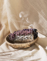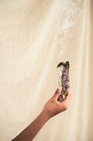 What’s Included: one 4-5” white sage sacred smoke stick adorned with all natural lilac flowers.
