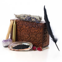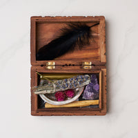 WHAT YOU’RE BURNING: Your kit will feature sustainably harvested Palo Santo sticks from trees on the coasts of South America, and Baja California-grown white sage harvested from a First Nations tribe credited for creating smudge sticks for over 300 years. Please note that although sage smoke helps cleanse bacteria from the air, its scent can be strong. Make sure to keep a window or two open while smudging. Each Heritage Apothecary Smudge kit is packaged with recycled materials and charged with loving intention by a Certified Usui Reiki Master Practitioner. Like all of us, you can expect some flaws. Everything in our Kit (including the hand-carved box) comes from nature where small imperfections signify life, authenticity, and survival.