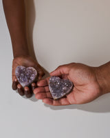 Worked in ancient times, amethyst is believed to promote peace and relaxation, relieve insomnia and reduce stress. Traditionally used for meditation due to its calming effect throughout the body, this stunning crystal has been carefully hand-cut by our expert Brazilian artisans. Take home this beautiful Amethyst heart today!