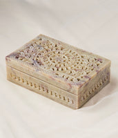 The natural stone boxes are each uniquely hand carved. They are products of nature and may differ in stone color.