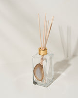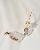 A gorgeous gold plated agate stone diffuser to hold your favorite fragrance blends, this hand forged glass vessel comes with all-natural reed diffuser sticks and will complement any home decor.