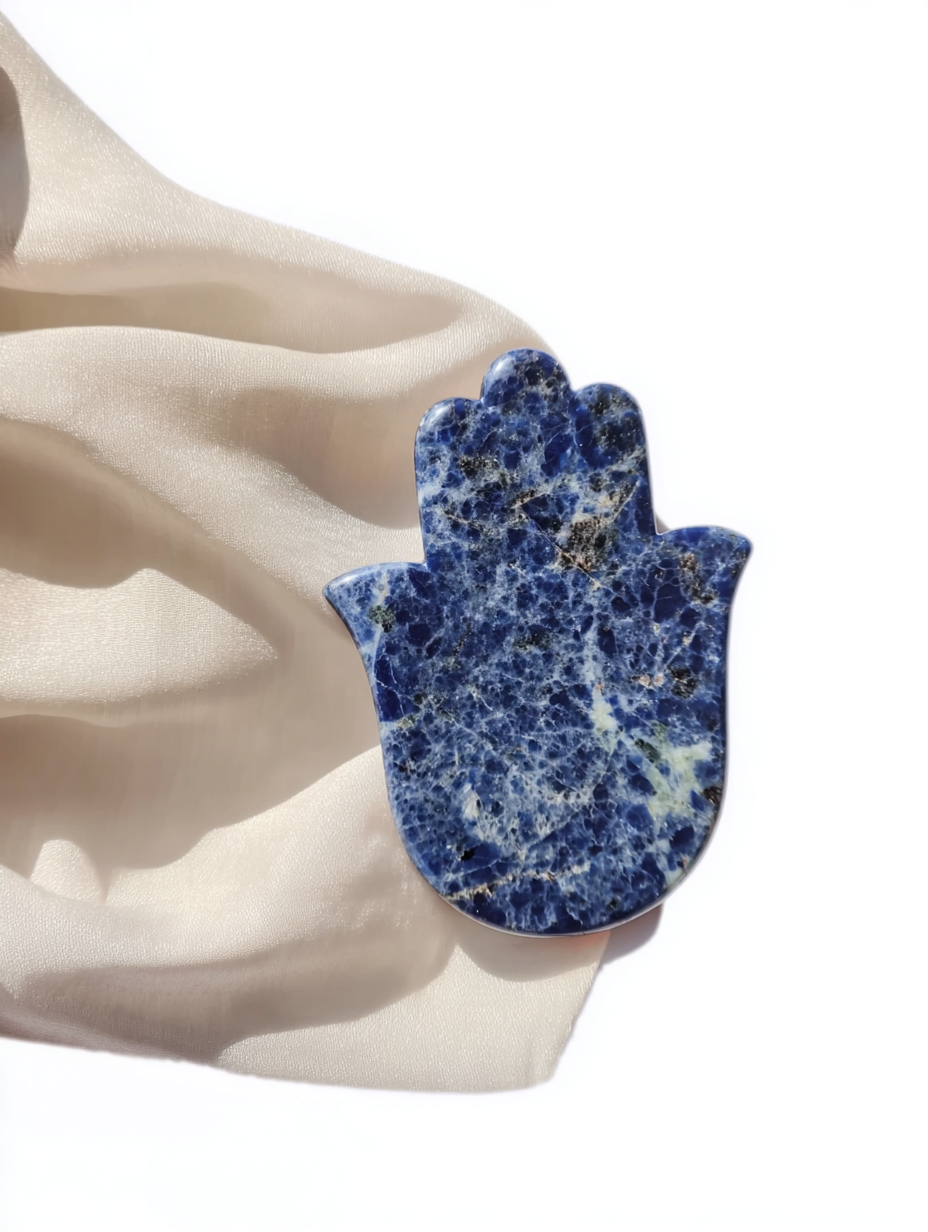 Hand-carved Hamsa in pink amethyst: a sacred protective talisman that combines ancient symbolism with rare stone energy.
